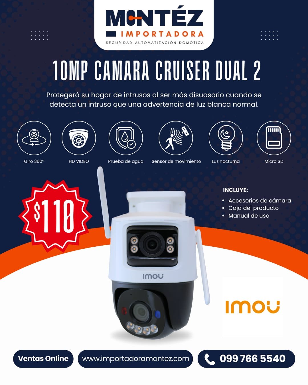 CAMARA IMOU DOBLE LENTE 10MP SIRENA LUZ ROJA Y AZUL